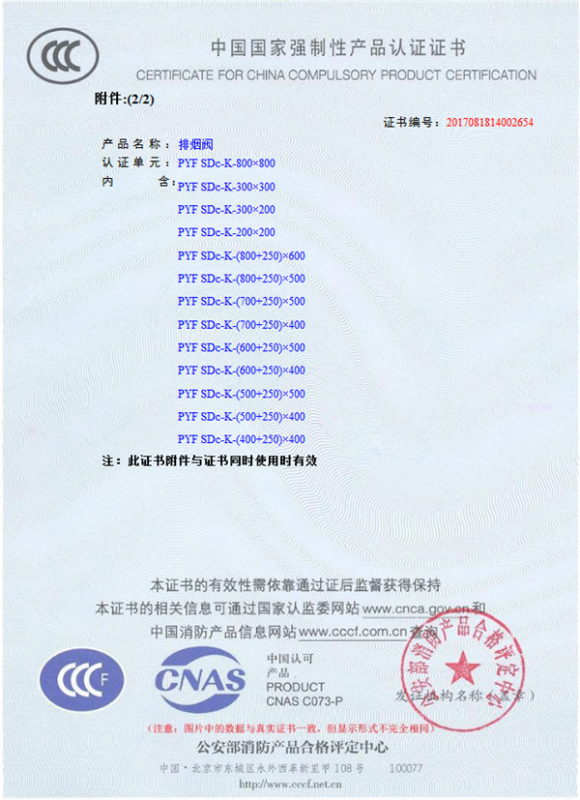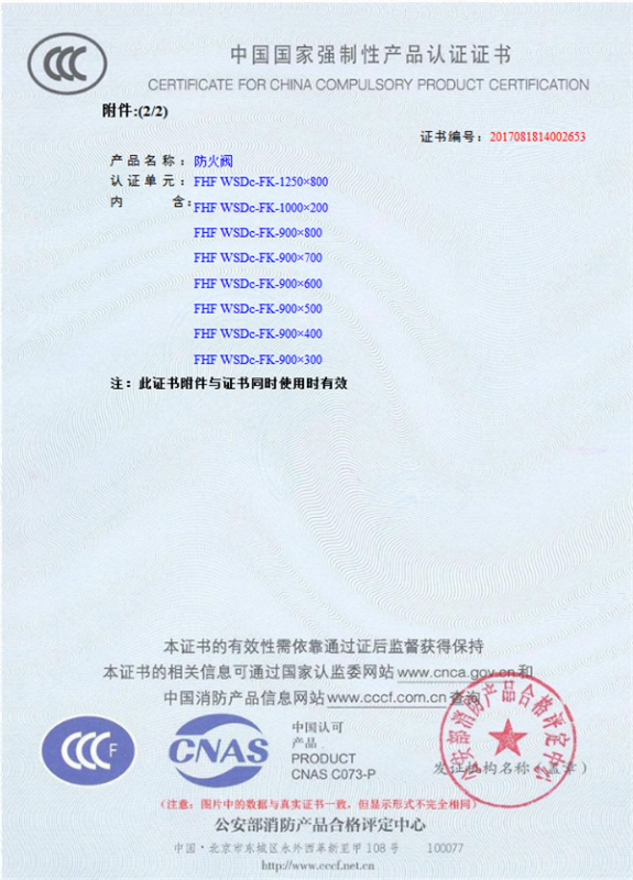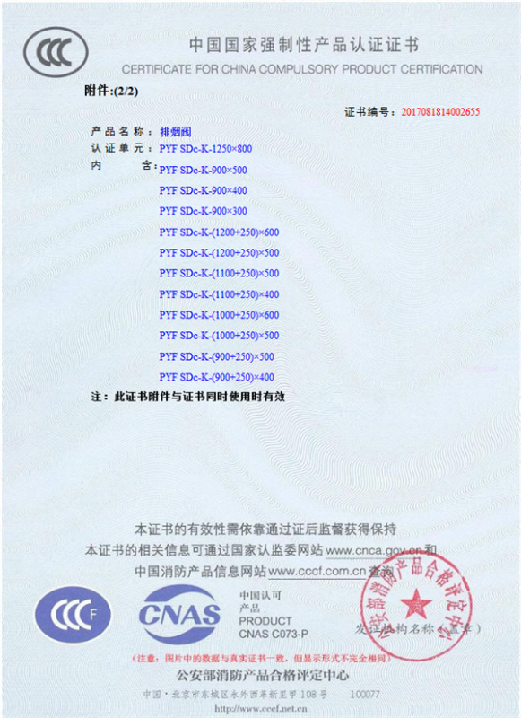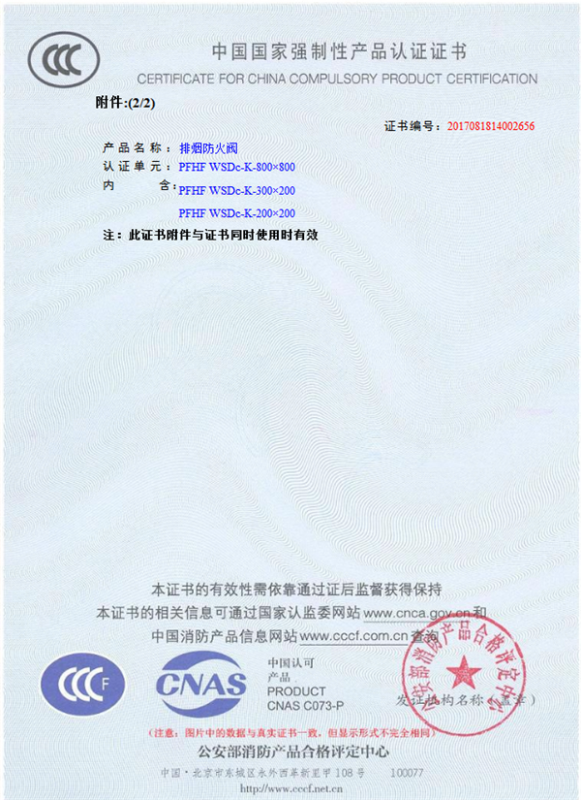 產(chǎn)品全通過國(guó)家消防檢測(cè)中心檢測(cè),獲得CCC證書